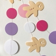 Паперова прошита новорічна гірлянда із пряничним чоловічком. Діаметр кіл: 4,5, 5,5 та 6,5см. Висота чоловічка: 8.5см. Ручна робота. Довжина 3м.