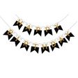 Чорно-білі прапорці із золотими дзеркальними літерами Happy birthday