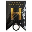 Чорні прапорці із золотими дзеркальними літерами Happy birthday Розмір прапорця: 11х16см. Чорна стрічка у комплекті.