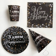 Чорні паперові ковпачки з написом "З Днем Народження". Виготовлені із щільного картону розміром 16 см (висота). Продаються поштучно. Ціна вказана за 1шт. Ідеально виглядають з іншими товарами цієї колекції (стаканчики, тарілочки).