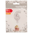 Цифра-топер у вигляді фольгованої кульки 6 срібло