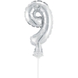 Цифра-топер у вигляді фольгованої кульки 9 срібло