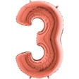 Велика повітряна куля у формі цифри 3 із фольги, виконана в кольорі рожеве золото. Висота в надутому вигляді - 90 см. Надує гелієм або повітрям. Має вбудований клапан, який полегшує надув. Спеціальна полімерна плівка, з якої виготовлений шар, дозволяє йому залишатися надутим від кількох тижнів до декількох місяців (залежно від надування).