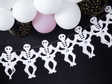 Фігурна гірлянда із тишею у вигляді скелетів білого кольору. Розмір – 300 см. Відмінно підійде для оформлення піратської вечірки або у стилі Хелловін.