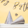 Фольгований ковпачок сріблястого кольору із ефектом голографії. Виготовлений із щільного картону розміром 16 см (висота). Продаються поштучно. Ціна вказана за 1шт. Ідеально виглядають з іншими товарами цієї колекції (стаканчики, тарілочки, серветки).