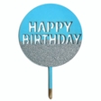 Блакитний топер зі срібним гліттером "Happy birthday"