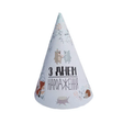 Паперові ковпачки тематики Лісові звірята з написом українськю "З днем народження". Виготовлені із щільного картону розміром 16 см (висота). Ідеально виглядають з іншими товарами цієї колекції (стаканчики, тарілочки, серветки).