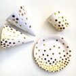Білі картонні ковпачки в золотий фольгований горошок. Відмінне доповнення будь-якого вбрання. Завдяки спеціальній гумці легко кріпляться на голові. Підходять дорослим та дітям. Продаються поштучно. Ціна вказана на 1шт.