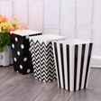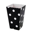 Чорні паперові коробки поп-корн в білий горошок. У розкладеному вигляді 5*5*11,5см.