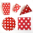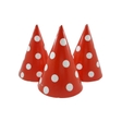 Червоні паперові ковпачки в білий горох. Виготовлені із щільного картону розміром 16 см (висота). Продаються поштучно. Ціна вказана за 1шт. Ідеально виглядають з іншими товарами цієї колекції (стаканчики, тарілочки, серветки, трубочки, скатертина).