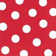Червоні паперові серветки у білий горох. Ідеально виглядають з іншими товарами цієї колекції (стаканчики, тарілочки, скатертина, трубочки, ковпачки, коробочки).
