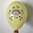 Асорті повітряних куль з мальованої різнокольорові веселки. Набір із 5-ти кульок рожевого, жовтого, м'ятного, блакитного та білого кольорів. Діаметр у надутому стані – 12 дюймів (близько 30 сантиметрів). Продаються в ненадутому вигляді!