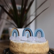 Набір міні топерів з дизайнерського паперу. У наборі 3 шт різних веселок із елементами дзеркального срібла. Розмір самої веселки без ніжки: 6,8*5 см. Ручна робота.