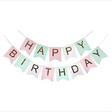 М'ятні, рожеві, білі прапорці з золотими дзеркальними літерами Happy birthday Розмір прапорця: 16х20см. Тобто ці прапорці більші за аналогічні. Стрічка у комплекті.