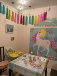 У набір входить: 5 настінних банерів із зображенням єдинорога та написом "Happy Birthday", а також 12 яскравих аксесуарів для селфі у вигляді звірів, квітів, сердець та єдинорігів на паличках. Матеріал банера: поліетилен. Повний розмір банеру 191х165см. Ідеально виглядає з іншими товарами цієї колекції (стаканчики, тарілочки, серветки, скатертина, ковпачки, конфетті, кулі).
