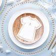 Білі паперові серветки колекції Communion у вигляді сорочки ангела із золотим фольгованим хрестиком. Зразковий розмір серветки у складеному вигляді 14*16см, у розкладеному 28*32см.