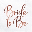 Білі серветки Bride to be. Фольгований напис лише на 1/4 серветки. Ідеально виглядають з іншими товарами цієї колекції (стаканчики, тарілочки, трубочки).