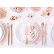 Паперові серветки ніжно-рожевого кольору в золотистий горошок Розмір у складеному вигляді: 16,5*16,5см. Розмір у розкладеному вигляді: 33*33см.
