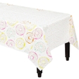 Тонка поліетиленова скатертина білого кольору з пончиками. Виготовлено американською компанією Unique.