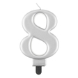Срібні парафінові свічки цифри від 0 до 9 польського виробництва. Свічки виготовлені з парафінового воску та не має запаху. Обладнана додатковим кріпленням для встановлення на торті.