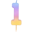 Свіча з градієнтом від золотого до рожевого кольорів у формі цифри один. Висота цифри: 6,7 см. Виготовлена з парафінового воску та не має запаху.