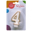 Парафінова свічка цифра польського виробництва. Свічка виготовлена з парафінового воску та не має запаху. Колір: біле наповнення, контур - золотий. Обладнана додатковим кріпленням для встановлення на торті.