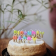 Різнокольорові свічки у вигляді 13 літер happy birthday висотою 2,5 см (без утримувача). Нижня частина букв покрита золотим глітером. Помістіть свічки на вершину свого торта та дозвольте своїм близьким загадати своє бажання! Ці барвисті свічки запалять кімнату для особливого моменту.