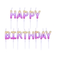 Свічки з градієнтом від рожевого до золотистого кольору у вигляді 13 букв happy birthday висотою 2,8 см (без тримача). Помістіть свічки на вершину свого торта та дозвольте своїм близьким загадати своє бажання! Ці барвисті свічки запалять кімнату для особливого моменту.