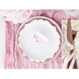 Фігурні білі паперові тарілочки із золотом. Ідеально виглядають з іншими товарами цієї колекції (стаканчики, серветки, трубочки).