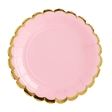 Рожеві паперові тарілочки із золотою облямівкою. Ідеально виглядають з іншими товарами цієї колекції (стаканчики, ковпачки).