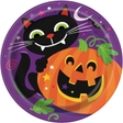 Паперові тарілочки з котиком та гарбузом. Ідеально виглядає з іншими товарами цієї колекції (стаканчики, серветки, скатертина, гірлянди). Відмінно підійде для оформлення вечірки у стилі Хелловін.